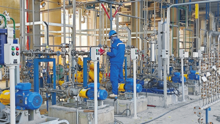 制造“綠色”,更要“綠色”制造。在廠區(qū)內,循環(huán)水站、凈水廠、污水站等廢棄物處理區(qū)早已拔地而起,進入試運行環(huán)節(jié)?!皬S區(qū)所產生的廢氣經(jīng)過DFTO處理達標排放,廢固由資質單位集中回收處理,污水經(jīng)過凈水處理、回用水裝置回收循環(huán)利用,可實現(xiàn)零排放。另外,還充分回收利用了開發(fā)區(qū)內的新石能源公司產生的焦爐氣作為燃料,讓綠色環(huán)保貫穿產品始終?!表椖抗こ處煆埡陚ソ榻B道。