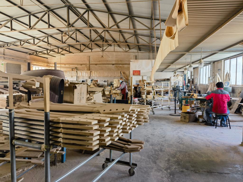 在濰坊大唐樂(lè)器發(fā)展有限公司,工人們正在加工木材。新華社記者 王志 攝