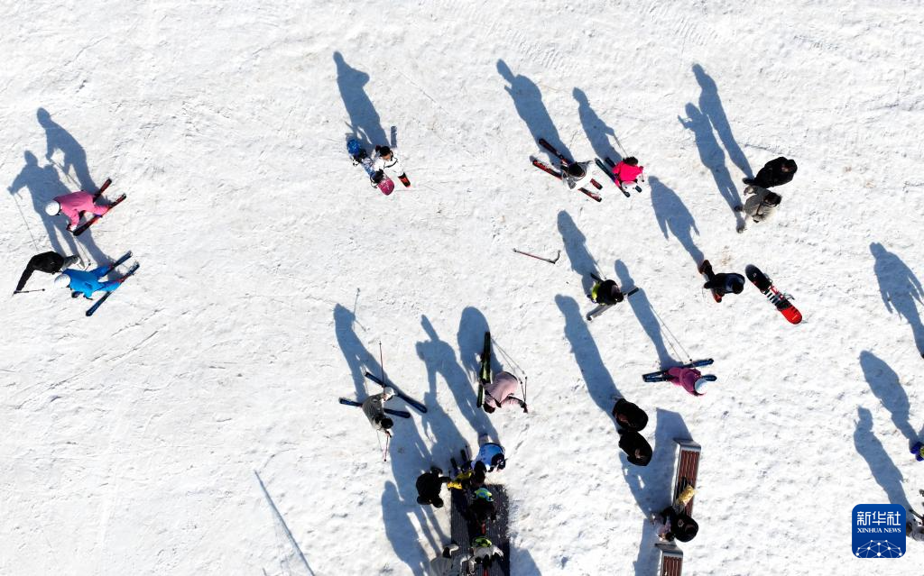 1月19日,游客在邯鄲市復(fù)興區(qū)東高河村滑雪場(chǎng)內(nèi)滑雪(無(wú)人機(jī)照片)。