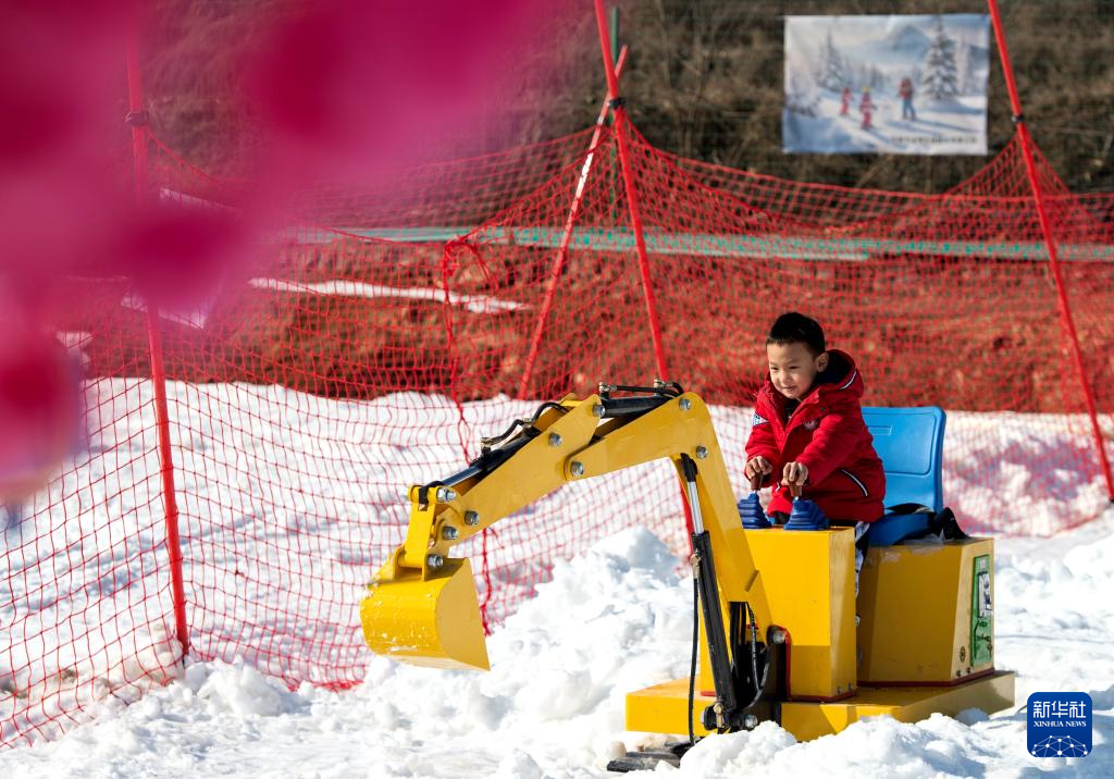 1月19日,在邯鄲市復(fù)興區(qū)東高河村滑雪場(chǎng),小朋友在體驗(yàn)雪地挖掘機(jī)項(xiàng)目。