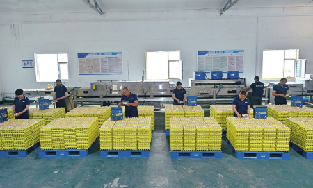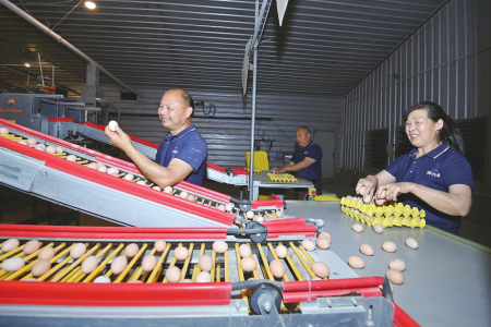 工作人員集中整理、包裝合格蛋品。