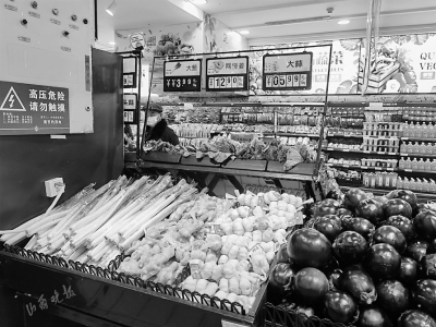 2日8時許,山西晚報記者在北京華聯(lián)超市太航店看到,各類新鮮蔬菜應(yīng)有盡有,促銷員不停地喊著“白菜、蘿卜、土豆六毛九一斤,紅薯九毛一斤,杏鮑菇兩塊九毛九一斤!”不少市民圍在這些特價蔬菜前仔細挑選,而在蔥姜蒜區(qū)域,卻幾乎沒有市民選購。