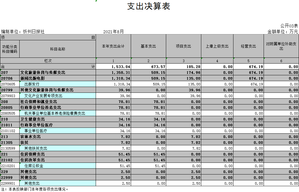 (三)部門決算單位構(gòu)成:忻州日報社是一級預(yù)算單位,無下屬單位。部門預(yù)算只有一個單位,即忻州日報社。