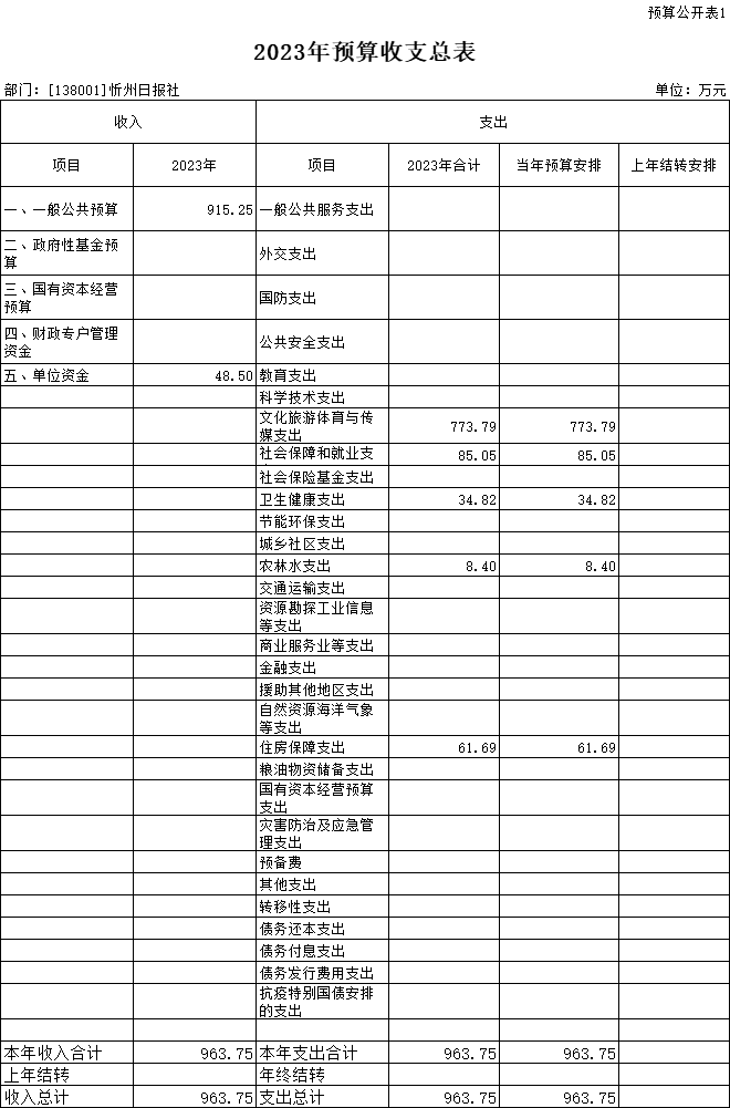 忻州日報社2023年收入預(yù)算963.75萬元,比2022年減少92.81萬元。