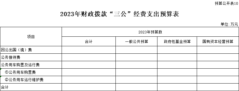 三、“三公”經(jīng)費:指省直部門用一般公共預(yù)算安排的因公出國(境)費用、公務(wù)用車購置及運行費和公務(wù)接待費。其中:因公出國(境)費用反映單位公務(wù)出國(境)的國際旅費、國外城市間交通費、住宿費、伙食費、培訓(xùn)費、公雜費等支出;公務(wù)用車購置費反映公務(wù)用車購置支出(含車輛購置稅、牌照費);公務(wù)用車運行維護(hù)費反映單位按規(guī)定保留的公務(wù)用車燃料費、維修費、過路過橋費、保險費、安全獎勵費用等支出;公務(wù)接待費反映機(jī)關(guān)和參公事業(yè)單位按規(guī)定開支的各類公務(wù)接待(含外賓接待)支出。