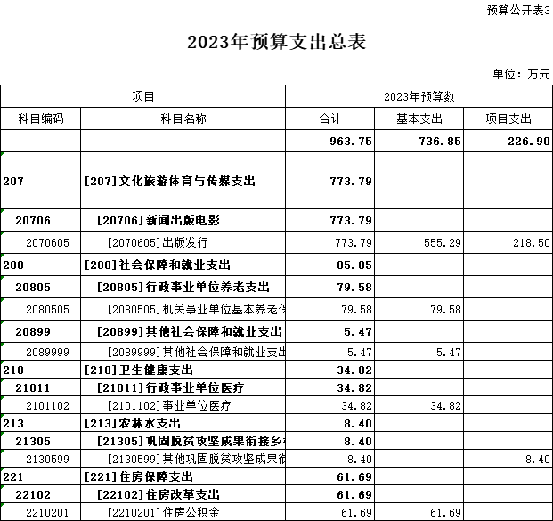 三、2023年預(yù)算支出總表