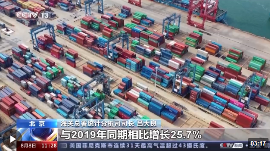 海關(guān)總署今天(8月8日)對(duì)外公布,今年前7個(gè)月,我國貨物貿(mào)易進(jìn)出口總值23.55萬億元,外貿(mào)運(yùn)行平穩(wěn)、符合預(yù)期。
