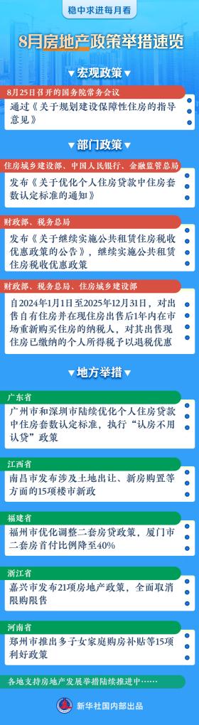 近段時間,相關部門陸續(xù)釋放地產領域積極政策信號:8月初,中國人民銀行在部署下半年工作時明確提出“繼續(xù)引導個人住房貸款利率和首付比例下行”;近日,住房城鄉(xiāng)建設部等三部門給出了“認房不認貸”政策具體實施標準;財政部還公布了兩項針對房地產市場的稅收優(yōu)惠政策。