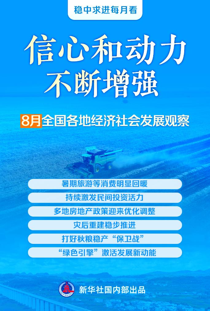 新華社北京8月31日電題:信心和動力不斷增強——8月全國各地經濟社會發(fā)展觀察