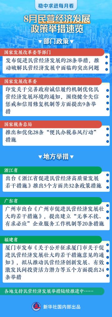 8月份以來,針對民營企業(yè)面臨的痛點、堵點、難點,從中央到地方密集推出系列政策舉措,旨在激發(fā)民間投資活力,鼓勵企業(yè)敢闖、敢投、敢擔風險。