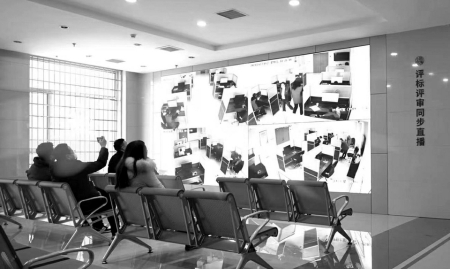參觀完一層大廳后,工作人員將媒體觀摩團(tuán)帶到了四層一個(gè)全封閉的區(qū)域——評標(biāo)區(qū),隨機(jī)抽取的專家會(huì)在這里進(jìn)行評標(biāo)工作。代表們首先是被一系列的科技防范“硬措施”所震撼,人臉識(shí)別身份核驗(yàn)機(jī)、金屬探測門防范冒名頂替,通信設(shè)備存儲(chǔ)柜、文件傳送智能機(jī)器人阻斷不必要的溝通,軌跡定位卡、電子呼叫系統(tǒng)、電子門牌等技術(shù)的應(yīng)用實(shí)現(xiàn)了對交易人員身份類別權(quán)限的精準(zhǔn)管控……還有全方位、超高清、永久保存的監(jiān)控設(shè)備,實(shí)時(shí)對外直播的電子大屏,實(shí)現(xiàn)了嚴(yán)密管控、處處震懾。
