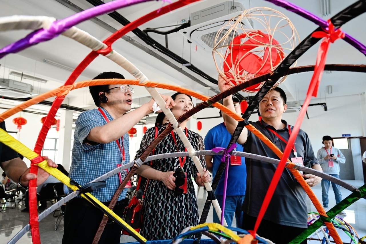 在“滾燈”文化公園,記者團親身感受了一把“潮鄉(xiāng)”的“滾燈”藝術的魅力。“滾燈”源自江南一帶的民間節(jié)日慶典,融合了舞蹈、技巧與體育精髓,愛好者展示給記者們的金港村“滾燈”,其制作工藝之考究讓大伙都嘖嘖贊嘆。