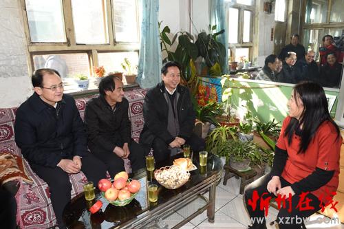 在靜樂(lè)縣縣城西林路慰問(wèn)困難職工李二紅(馮曉磊 攝)