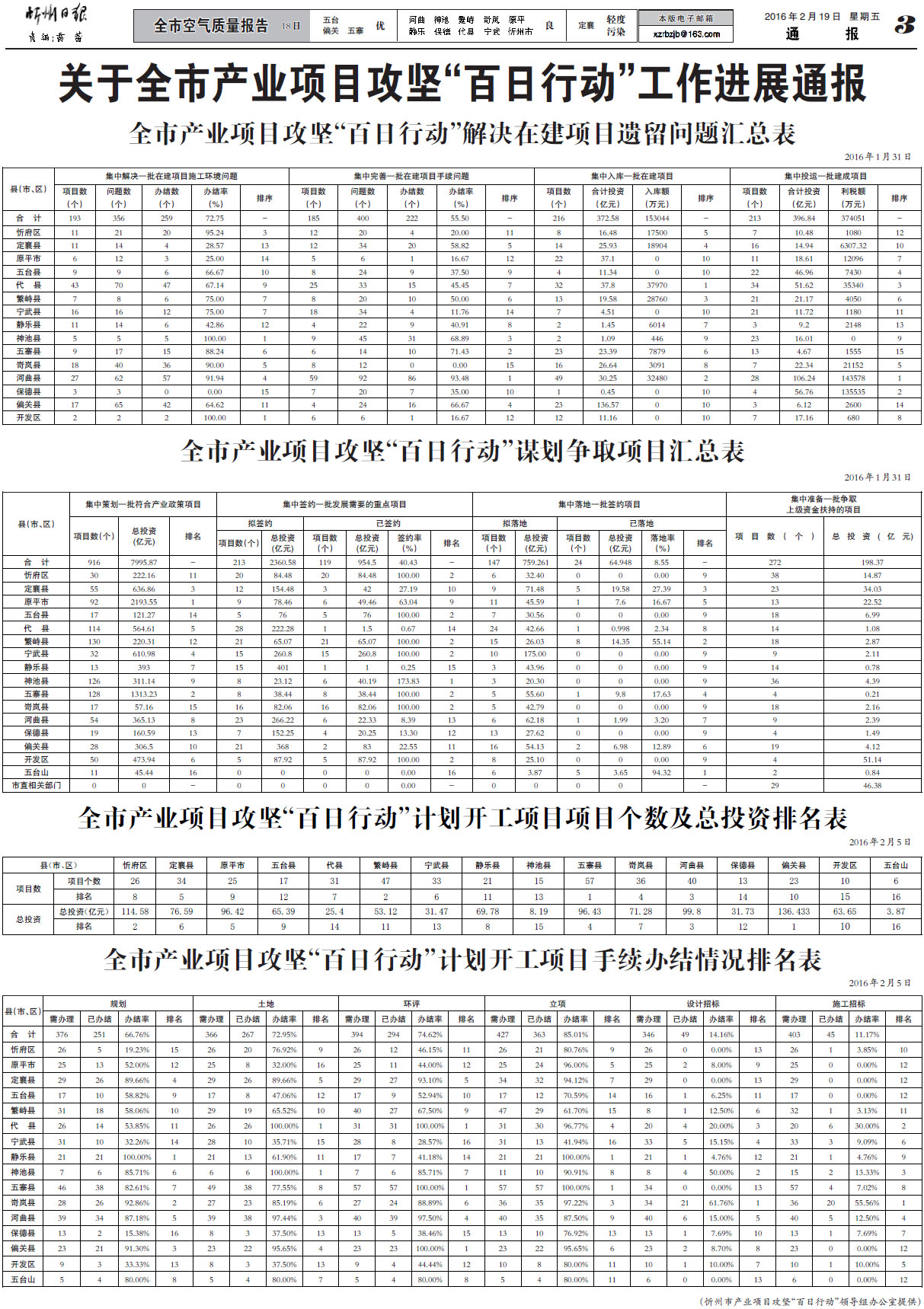 忻州市對產(chǎn)業(yè)項目攻堅“百日行動”工作進(jìn)行通報