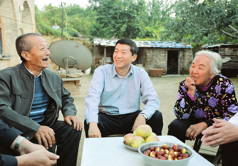 9月19日下午,臨縣林家坪鎮(zhèn)南圪垛村的一個(gè)農(nóng)家小院里,傳出陣陣舒心的笑聲,這是省委書記駱惠寧正在與貧困戶劉玉恩老兩口親切交談,詳細(xì)了解他們家因病致貧的情況,關(guān)切地詢問病情和具體困難。駱惠寧要求,要進(jìn)一步深化醫(yī)療衛(wèi)生體制改革,為解決因病致貧提供支撐。(本報(bào)記者 李聯(lián)軍 攝)