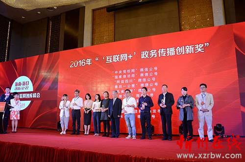 本報訊 12月22日,首屆全國互聯(lián)網(wǎng)智庫峰會暨第四屆網(wǎng)絡(luò)輿情論壇在海南省??谑新≈卣匍_。中央及各省(市、自治區(qū))宣傳和網(wǎng)信部門領(lǐng)導(dǎo)、國內(nèi)業(yè)界知名專家、學(xué)者、政務(wù)新媒體代表等200余人齊聚一堂,圍繞“‘十三五’供給側(cè)改革背景下輿論新格局”主題,深入探討互聯(lián)網(wǎng)內(nèi)容建設(shè)與供給、政務(wù)輿情回應(yīng)和引導(dǎo)的新理念、新思路、新格局。會議期間,舉行了2016年“互聯(lián)網(wǎng)+政務(wù)傳播創(chuàng)新獎”、“政務(wù)輿情回應(yīng)優(yōu)秀獎”、“城市新媒體傳播優(yōu)秀獎”和“全國政法新媒體建設(shè)優(yōu)秀獎”頒獎儀式。忻州隨手拍榮獲2016年全國“互聯(lián)網(wǎng)+政務(wù)傳播創(chuàng)新獎”,為十佳之一。