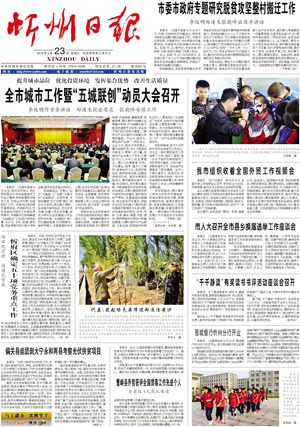 4月22日,忻州市召開會(huì)議,動(dòng)員全市開展“五城聯(lián)創(chuàng)”工作。提出了要以建設(shè)宜居忻州、造福人民群眾為目的、以“創(chuàng)衛(wèi)”為基礎(chǔ)、以“創(chuàng)園”為重點(diǎn)的創(chuàng)建國(guó)家衛(wèi)生城市、省級(jí)園林城市、國(guó)家環(huán)保模范城市、省級(jí)智慧城市、省級(jí)文明城市。同時(shí)宣布成立了“五城聯(lián)創(chuàng)”總指揮部,全面推進(jìn)了“五城聯(lián)創(chuàng)”工作。9月2日和12月9日,我市相繼召開忻州城區(qū)創(chuàng)建國(guó)家衛(wèi)生城市大會(huì)和再動(dòng)員大會(huì),對(duì)創(chuàng)衛(wèi)工作再部署、任務(wù)再明確,進(jìn)一步動(dòng)員市、區(qū)各級(jí)各部門提高認(rèn)識(shí),明確責(zé)任,強(qiáng)化措施,狠抓落實(shí),確保城區(qū)順利創(chuàng)建國(guó)家衛(wèi)生城市。目前中心城區(qū)創(chuàng)建國(guó)家衛(wèi)生城市通過專家暗訪,14個(gè)縣(市、區(qū))實(shí)現(xiàn)創(chuàng)衛(wèi)全覆蓋,全省唯一。中心城區(qū)和原平、五臺(tái)、寧武、岢嵐創(chuàng)建省級(jí)園林城市通過省考核驗(yàn)收,數(shù)量全省第一。加強(qiáng)大氣污染防治,全年二級(jí)以上天氣同比增加9天,是全省完成年度目標(biāo)任務(wù)的3個(gè)市之一。(2016年4月23日《忻州日?qǐng)?bào)》)