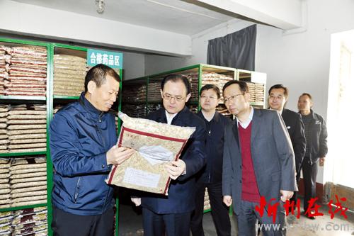 圖為市委書記李俊明在市藥業(yè)集團(tuán)調(diào)研。本報(bào)記者 劉紀(jì)森 攝