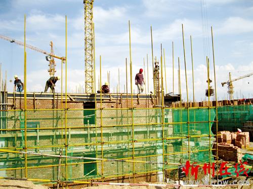 圖為8月12日民工們正在緊張施工的場(chǎng)面。賈金理 攝