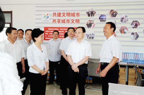 李俊明一行先后到“五城聯(lián)創(chuàng)”指揮部創(chuàng)建文明城市辦公室、供電公司開(kāi)發(fā)區(qū)營(yíng)業(yè)廳、開(kāi)萊國(guó)際社區(qū)、人民公園、逯家莊村、七一路與和平街交叉路口等地,實(shí)地查閱資料,調(diào)研志愿者隊(duì)伍建設(shè)、窗口單位服務(wù)、社區(qū)居民文明創(chuàng)建、社會(huì)主義核心價(jià)值觀展示宣傳、美麗鄉(xiāng)村建設(shè)、沿街商鋪宣傳和城市交通秩序管理,就創(chuàng)建工作階段性成果和存在問(wèn)題聽(tīng)取意見(jiàn)建議,研究部署創(chuàng)建迎檢各項(xiàng)工作。