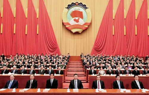 3月13日,中國(guó)人民政治協(xié)商會(huì)議第十三屆全國(guó)委員會(huì)第二次會(huì)議在北京閉幕。這是習(xí)近平、李克強(qiáng)、栗戰(zhàn)書(shū)、王滬寧、趙樂(lè)際、韓正、王岐山等在主席臺(tái)就座。新華社記者 黃敬文 攝