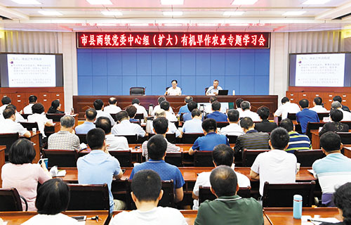 圖為市縣兩級黨委中心組(擴大)有機旱作農(nóng)業(yè)專題學習會會場。本報記者 劉紀森 攝