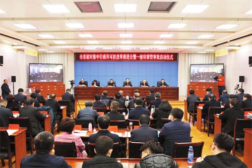 圖為全市相對集中行政許可權(quán)改革推進(jìn)會會場。本報(bào)記者 范濤 攝