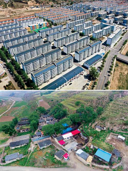 近年來,山西堅(jiān)持抓減負(fù)、重落實(shí),把基層工作聚焦到鄉(xiāng)村振興與脫貧攻堅(jiān)、社區(qū)服務(wù)與基層治理、服務(wù)中心與保障大局上來。目前,山西全省58個(gè)貧困縣已全部摘帽,3350個(gè)深度貧困自然村整體搬遷全部完成。圖片為拼版照片,上圖為2020年5月20日拍攝的山西省忻州市岢嵐縣廣惠園移民新區(qū),下圖為2017年6月22日拍攝的岢嵐縣趙家洼村,部分趙家洼村村民目前已搬遷居住到了廣惠園移民新區(qū)。 新華社記者 曹陽/攝