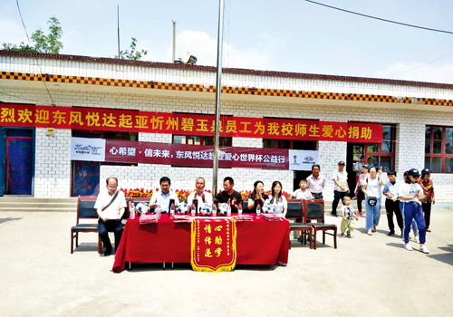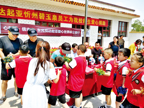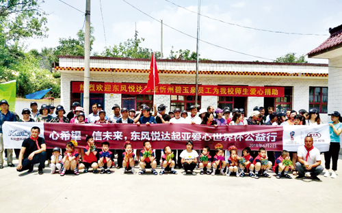 2018年6月2日“心希望信未來”東風(fēng)悅達(dá)起亞世界杯公益行活動(dòng)如期成功舉行。本次活動(dòng)由東風(fēng)悅達(dá)起亞廠家冠名支持,由忻州碧玉泉公司員工、部分保有客戶及家屬、意向客戶及媒體工作人員共60多人和代縣兩界溝小學(xué)全體師生共同參與。