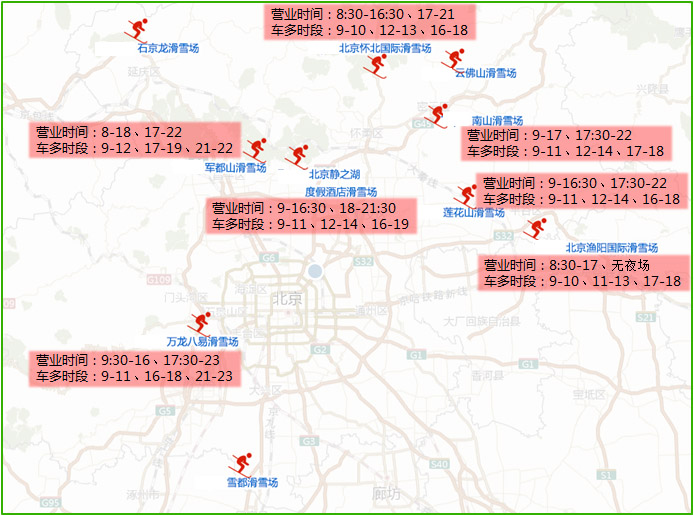隨著冬奧會(huì)臨近,冰雪運(yùn)動(dòng)也在逐年升溫。北京周邊的南山、軍都山、漁陽(yáng)等滑雪場(chǎng)不管在周末假期還是冬季的其他假期都會(huì)吸引大量愛(ài)好者?;┱叨鄶?shù)會(huì)選擇駕車(chē)前往,滑雪場(chǎng)周邊道路車(chē)流量較大,特別是近城區(qū)的幾個(gè)滑雪場(chǎng)熱度較高,9時(shí)至10時(shí)、12至14時(shí)、16至18時(shí)三個(gè)時(shí)段,周邊道路的車(chē)輛最多,交通壓力最大。