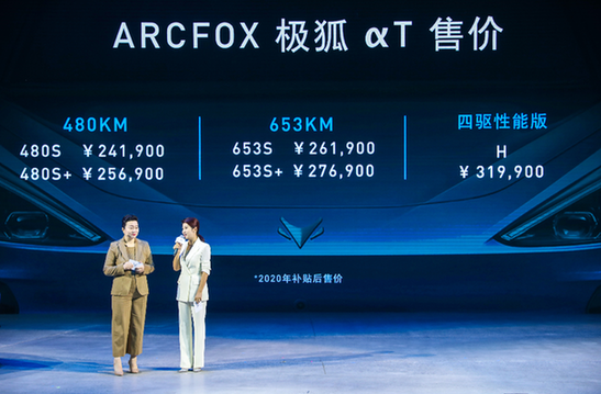 10月24日,高端智能新能源汽車品牌ARCFOX極狐在北京首鋼園舉辦“甭設(shè)限探索日”,同步宣布首款量產(chǎn)車型ARCFOX極狐αT售價。新車擁有480/600/653km三種續(xù)航版本五款車型,售價24.19-31.99萬元,今年內(nèi)購車更可享受3年0利率或首付15%低息貸款禮遇,另外置換購車用戶還可享受最高1.5萬元補貼。