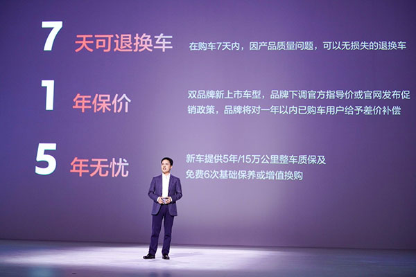 “買車放心”,開創(chuàng)性地推出“7·1·5”三項服務政策,即“7天可退換車”“新車承諾1年保價”“新車質(zhì)保5年無憂”。消費者在購車7天內(nèi),因產(chǎn)品質(zhì)量問題,可以無損失的退換車;雙品牌新上市車型,品牌下調(diào)官方指導價,或官網(wǎng)發(fā)布促銷政策,將對1年以內(nèi)已購車用戶給予差價補償;新車至高享受5年/15萬公里整車質(zhì)保+免費6次基礎保養(yǎng)(或可選擇增值換購禮),遠高于三包標準和行業(yè)水平。