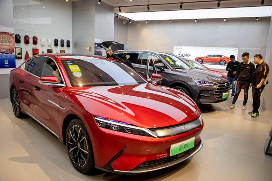 統(tǒng)計(jì)數(shù)據(jù)顯示,2021年新能源汽車產(chǎn)銷分別達(dá)到354.5萬輛和352.1萬輛,同比增長(zhǎng)均為1.6倍。此外,新能源汽車市場(chǎng)占有率提升至13.4%,進(jìn)一步說明新能源汽車市場(chǎng)已從政策驅(qū)動(dòng)轉(zhuǎn)向市場(chǎng)拉動(dòng)。在終端消費(fèi)日漸活躍的同時(shí),越來越多的自主品牌憑借新能源汽車闖出了一條“銷量上升、品牌向上”的新路子。圖為消費(fèi)者在上海一家比亞迪店內(nèi)體驗(yàn)新車。視覺中國(guó)供圖