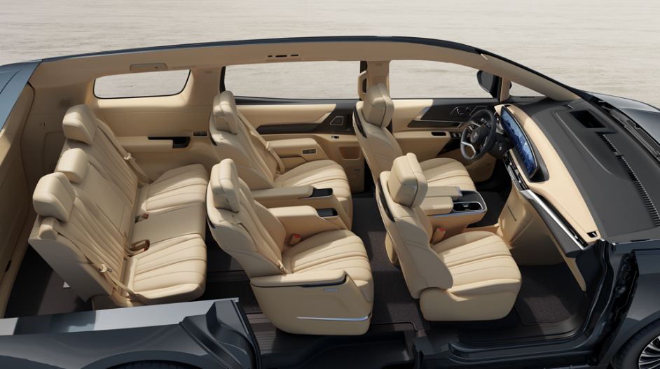 值得一提的是,七座臻享款第二排憑借電動(dòng)橫滑設(shè)計(jì),讓兩個(gè)座椅可以獨(dú)立橫向移動(dòng),既能靠攏后讓乘客交流親密無(wú)間,也可向兩側(cè)分開(kāi)形成190mm中央寬敞通道,讓進(jìn)出第三排更為便捷。根據(jù)用戶(hù)高頻出行場(chǎng)景,七座臻享款提供7項(xiàng)一鍵奢享座椅聯(lián)動(dòng)模式,包括三排便捷上/下車(chē)、后備箱延伸、休憩、舒適、近享、入眠模式,通過(guò)前排中控屏、頂襯旋鈕或二排扶手屏控制,讓用車(chē)生活更愜意舒心。新車(chē)后備箱標(biāo)準(zhǔn)容積為604升,能輕松放置4個(gè)28吋行李箱;當(dāng)?shù)谌抛巫畲蠡耙疲瑒t可形成縱深1112mm、容積1901升的超大空間,適配更多用車(chē)場(chǎng)景需求。