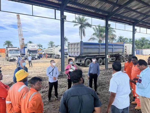東風(fēng)人員在尼日利亞CNG牽引車(chē)工地現(xiàn)場(chǎng)與客戶交流