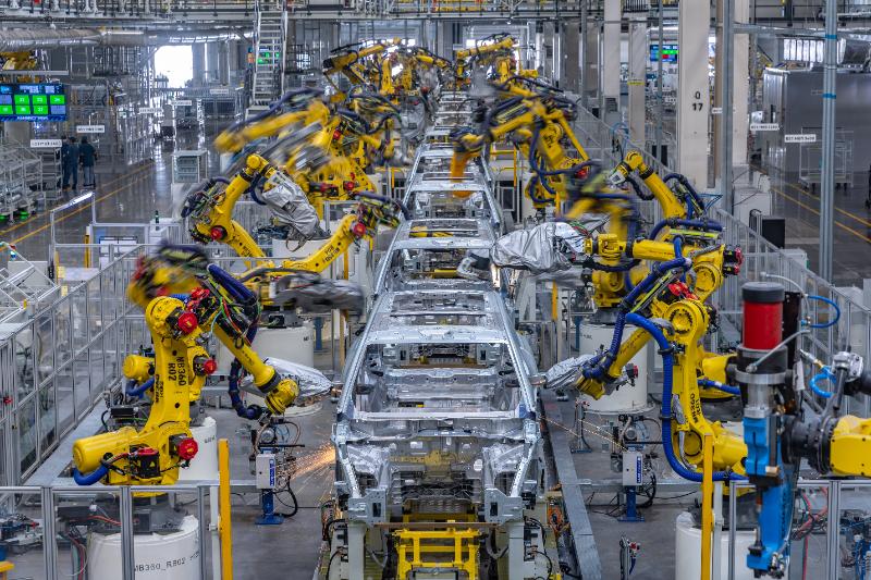 (資料圖片)在位于重慶兩江新區(qū)的賽力斯超級工廠,焊裝車間生產(chǎn)線上的機(jī)器人在精準(zhǔn)執(zhí)行作業(yè)指令。新華社記者 黃偉 攝
