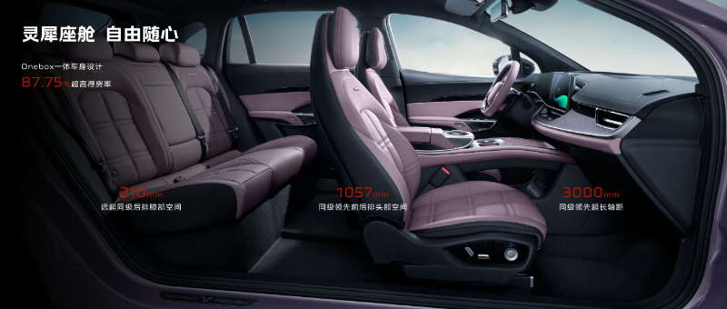 天工08致力于為用戶提供大空間極致舒享體驗。它擁有同級領(lǐng)先的87.75%得房率、前后排1057mm的超大頭部空間、遠(yuǎn)超同級的210mm二排膝部空間,身高1.8m的用戶坐在后排也可實現(xiàn)腿部活動自由,全家出行、一路暢享。