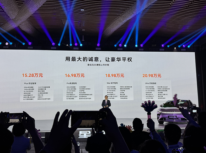 此次星紀(jì)元ES增程共推出四個版本,分別是Plus舒適智享15.28萬元、Pro高速智駕16.98萬元、Max城市智駕18.98萬元、Ultra四驅(qū)旗艦20.98萬元。上市期間下定并鎖單的用戶可享受七大權(quán)益,包含至高價(jià)值53000元的四大權(quán)益,分別為價(jià)值30000元NEP全場景智駕功能終身免費(fèi)使用的智駕禮(限Max城市智駕和Ultra四驅(qū)旗艦)、價(jià)值10000元的3年0息金融方案的金融禮、價(jià)值10000元免費(fèi)升級超享豪華包(限Pro高速智駕)的升級禮、價(jià)值3000元限時2000元升級價(jià)值5000元晨曦紅和極光紫個性外觀色的炫彩禮,還有質(zhì)保禮、流量禮、救援禮三大權(quán)益,將用戶權(quán)益最大化。