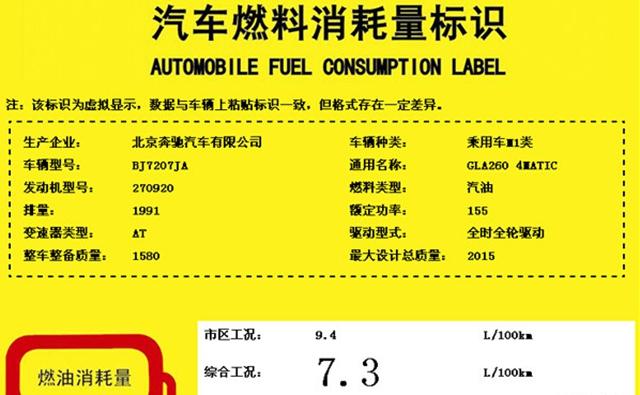國產(chǎn)奔馳新款GLA油耗信息
