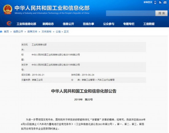 6月24日,工信部正式發(fā)布了一則公告,明確表示自今年6月21日起,廢止《汽車動力蓄電池行業(yè)規(guī)范條件》(工業(yè)和信息化部公告2015年第22號),同時廢止的還有第一、第二、第三、第四批符合規(guī)范條件企業(yè)目錄。全國乘用車市場信息聯(lián)席會秘書長崔東樹在接受《中國汽車報》記者采訪時表示,此舉意味著,在業(yè)內(nèi)存在近4年的新能源汽車動力電池“白名單”正式取消,國內(nèi)動力電池領(lǐng)域?qū)⒂瓉硇乱惠喌母偁帯?/p>
