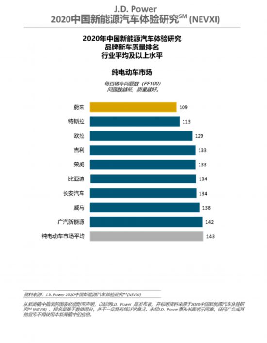 研究結(jié)果顯示,上汽大眾(105 個(gè) PP100)獲得插電混動(dòng)車市場(chǎng)新車質(zhì)量第一名,寶馬(108個(gè)PP100)位列插電混動(dòng)車市場(chǎng)第二位。蔚來(109 個(gè) PP100)獲得純電動(dòng)車市場(chǎng)新車質(zhì)量第一名,特斯拉(113個(gè)PP100)和歐拉(129個(gè)PP100)位列純電動(dòng)車市場(chǎng)第二和第三位;車型層面,歐拉R1榮獲小型純電動(dòng)細(xì)分市場(chǎng)第一;榮威Ei5榮獲緊湊型純電動(dòng)細(xì)分市場(chǎng)第一;蔚來ES6摘得中型純電動(dòng)細(xì)分市場(chǎng)第一;大眾帕薩特 PHEV 摘得主流插電混動(dòng)細(xì)分市場(chǎng)第一;豪華插電混動(dòng)和大型純電動(dòng)細(xì)分市場(chǎng)因?yàn)椴粷M足細(xì)分市場(chǎng)頒獎(jiǎng)條件,因而沒有獎(jiǎng)項(xiàng)頒出。