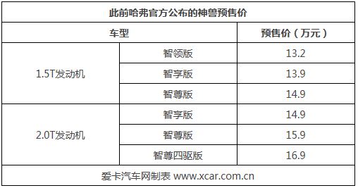 日前,愛卡汽車從相關(guān)渠道獲悉,哈弗神獸預(yù)計(jì)將于廣州車展上市,新車的預(yù)售價(jià)區(qū)間為13.2-16.9萬元。哈弗神獸搭載了1.5T和2.0T發(fā)動(dòng)機(jī),在設(shè)計(jì)上采用了最新的家族式設(shè)計(jì)語言,無邊界格柵極具家族辨識(shí)度。神獸的內(nèi)飾同樣是科技感十足,新車配備了14.6英寸中控液晶屏+12.3英寸液晶儀表。