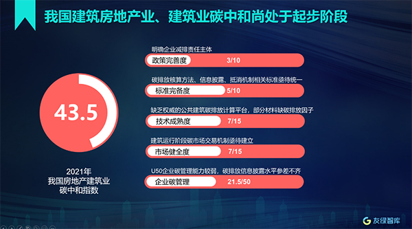 日前,由友綠智庫主辦的2021房地產(chǎn)建筑業(yè)碳中和指數(shù)暨2021《中國綠色地產(chǎn)發(fā)展報告》發(fā)布會在京舉行。會議深度解讀了房地產(chǎn)建筑業(yè)在“雙碳”領(lǐng)域的政策、技術(shù)、標(biāo)準(zhǔn)、市場和企業(yè)的應(yīng)對之策。
