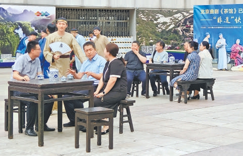 “喲,這位爺,您里邊請(qǐng)!”昨天下午,北京北站下沉廣場上,一位位身著戲服的曲劇演員登場,邀請(qǐng)過往行人移步至一旁的“茶館”品茶。旅客被演員帶入沉浸式表演中,現(xiàn)場不時(shí)發(fā)出笑聲和喝彩聲。原來這是北京市重點(diǎn)站區(qū)管理委員會(huì)北站辦與北京市曲劇團(tuán)聯(lián)合策劃的“黨建引領(lǐng)·京韻暢行”快閃活動(dòng)。此次快閃活動(dòng)通過沉浸式表演,將北京曲劇《茶館》片段融入旅客和市民的出行場景。