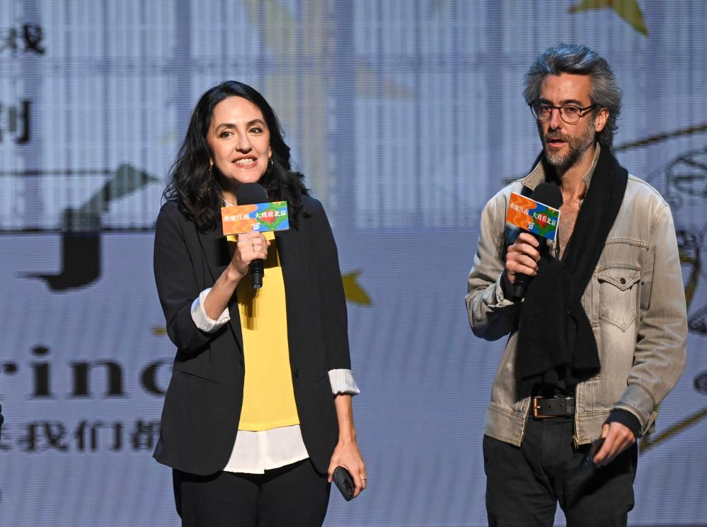 10月12日,在位于北京的中央歌劇院劇場(chǎng),音樂戲劇《小王子》導(dǎo)演讓·貝洛里尼(右)、總制作人安娜出席發(fā)布會(huì)。新華社記者 金良快 攝