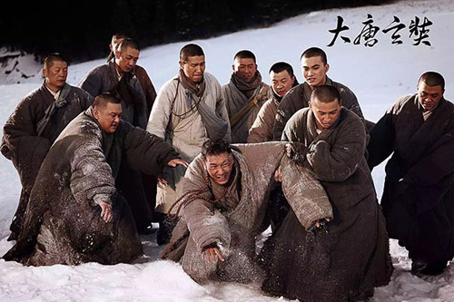1300多年前,玄奘法師用了19年完成了這段行走在信念之上的旅程:他遠(yuǎn)赴印度求法,而心中早已成佛?!洞筇菩省吩佻F(xiàn)了這一段傳奇之旅,玄奘西行中經(jīng)歷了各種磨難,甚至數(shù)度命懸一線:被當(dāng)成偷渡者,險中西域邊陲的箭雨;徒弟石盤陀因被心魔驅(qū)動,竟對恩師匕首相對。廣袤無垠的沙漠中失去水源又迷失方向時,差點命喪黃沙,這些都擋不住他鑒定的腳步。最終玄奘憑著內(nèi)心不變的信念,完成了這段不可能的旅程。桑馴華飾演的小和尚一直陪在黃曉明飾演的玄奘法師身邊,一切艱難險阻都一起經(jīng)歷了,影片轉(zhuǎn)戰(zhàn)各地實景拍攝——玄奘自長安,途徑哈薩克斯坦等國,最終達(dá)到印度,每一個地區(qū)百姓的不同口音,不一樣的服裝、建筑風(fēng)格,不一樣的地理特征,配合每個地域特有的民族風(fēng)情的配樂,令人印象深刻。但對于黃曉明和桑馴華而言,在這大好風(fēng)光背后,卻都充斥著