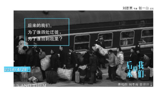 劉若英導演電影處女作《后來的我們》昨天(11日)發(fā)布第一波海報與預告,并宣布定檔4月28日。該片由張一白監(jiān)制,井柏然、周冬雨領銜主演,田壯壯主演。值此春運回家高峰期發(fā)布的系列海報,用質問的方式帶出人生與春運的現實主題:〝為什么只有過年,才會想到回家?〞、“為什么討厭春運,卻還要回家?”、“為什么在擁擠的人群里,還覺得自己孤身一人?”等,直戳觀眾內心,引發(fā)熱議。劉若英導演也希望透過春運的提問,讓這個愛情故事更貼近現實生活與人生感動。