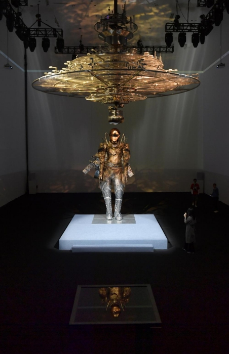 新華網(wǎng)北京5月21日電(記者 楊靜)電影藝術(shù)指導(dǎo)、影視美術(shù)創(chuàng)作藝術(shù)家葉錦添的個展“葉錦添:全觀”正在北京今日美術(shù)館進行。這次展覽是一場藝術(shù)家作品的集中展示,通過裝置、影像、攝影、繪畫、時裝等形式,體現(xiàn)了藝術(shù)家對時空、未來、宇宙、生命等概念的思考與探索。近日,葉錦添接受新華網(wǎng)采訪,詳解展覽作品中體現(xiàn)出來的“精神DNA”概念,闡釋他一直以來堅持的新東方主義美學(xué),同時跟我們分享了他的個人藝術(shù)生涯。