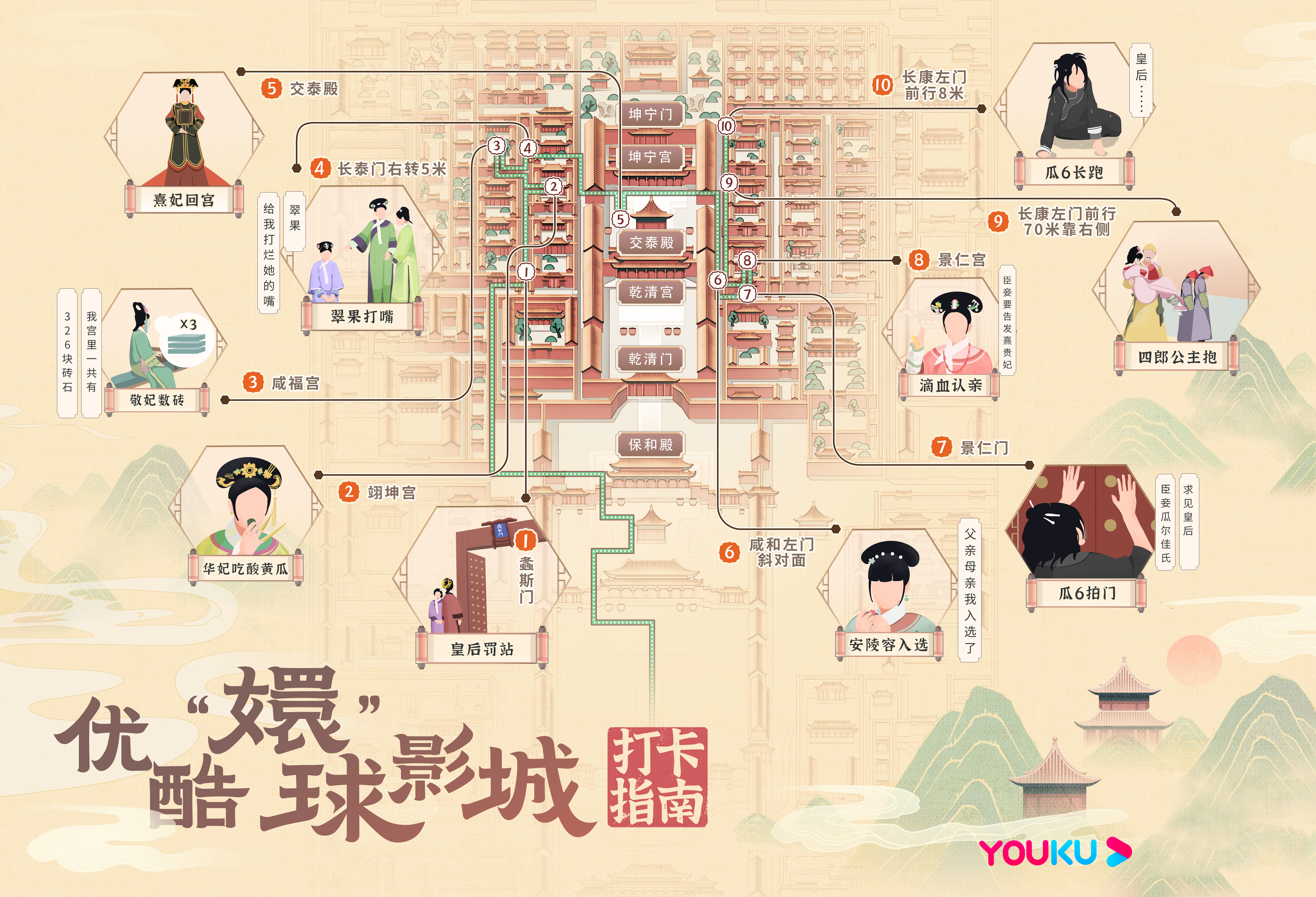 如今許多人去故宮博物院參觀游玩,還多了一項(xiàng)打卡內(nèi)容——拍《甄嬛傳》?;ヂ?lián)網(wǎng)上,最開(kāi)始有“甄學(xué)家”們參照著劇情,研究出一條實(shí)操性強(qiáng)的打卡路線圖,后來(lái)更是火到視頻平臺(tái)同步更新了詳細(xì)版打卡指南。
