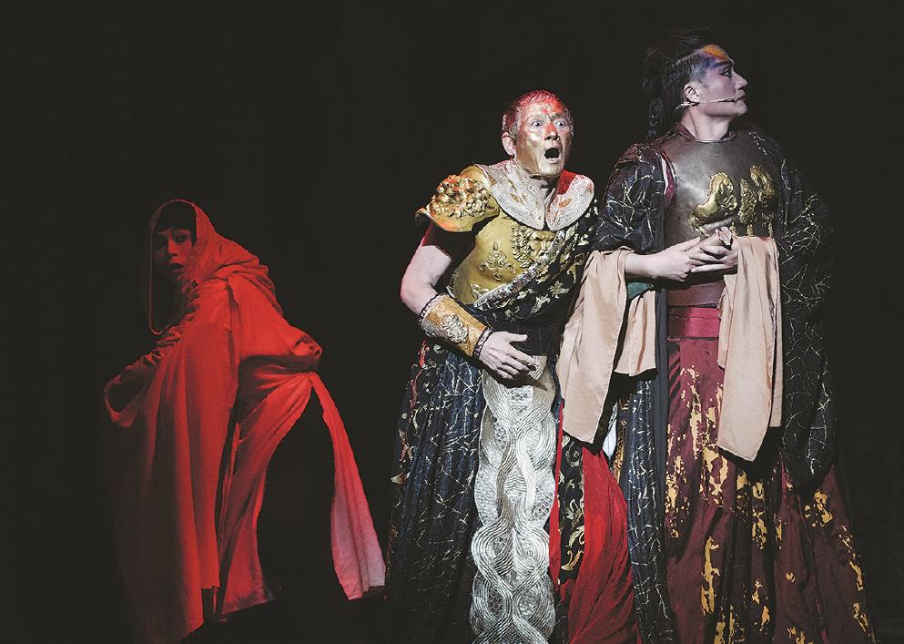 京昆新歌劇《凱撒》是根據(jù)經(jīng)典莎劇《凱撒大帝》進(jìn)行的當(dāng)代創(chuàng)作,滬臺藝術(shù)家吳興國、張軍首度合作。圖為劇照。 (演出方供圖)